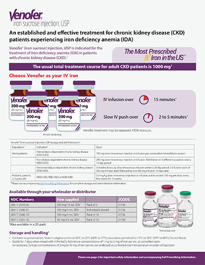 Below, you will find downloadable Venofer® (iron sucrose) injection, USP guides and resources for your practice, including treatment algorithms, dosing and administration information, and more. We will be adding more resources over time. Documents are in PDF format.